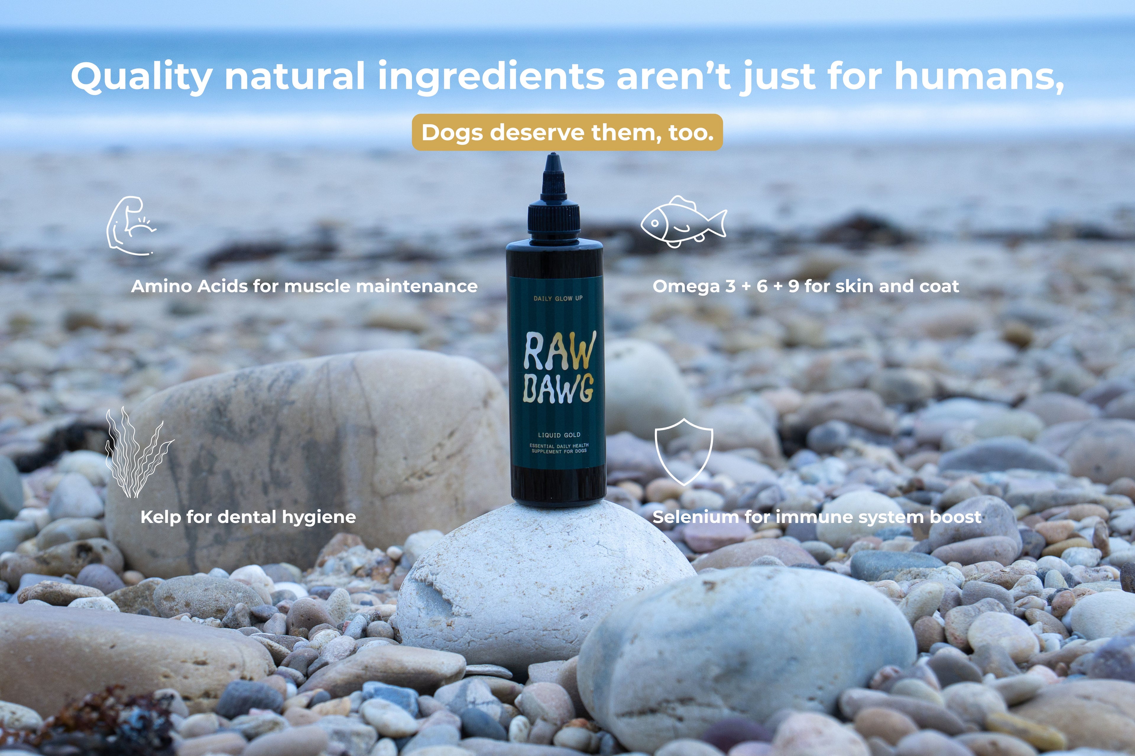 A science backed formula designed specifically for dogs. Our Liquid gold is the perfect supplement to support any dogs diet. This 11 in 1 super supplement is all you need to support your dog's health and well being.